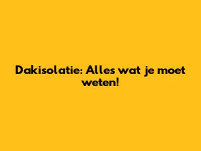 Dakisolatie: Alles Wat Je Moet Weten!