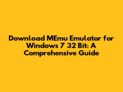 Download MEmu Emulator For Windows 7 32 Bit: A Comprehensive Guide