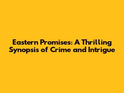 Eastern Promises: A Thrilling Synopsis Of Crime And Intrigue