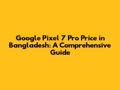 Google Pixel 7 Pro Price In Bangladesh: A Comprehensive Guide