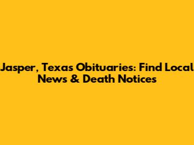 I hope this comprehensive guide helps you in your search for Jasper, Texas obituaries. Remember, finding these records is not just about the past; it's about honoring lives and preserving the memories of those who shaped the community. Good luck, and take care!