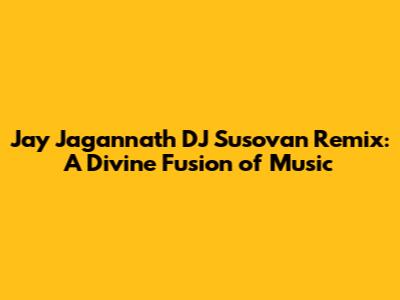 Jay Jagannath DJ Susovan Remix: A Divine Fusion Of Music