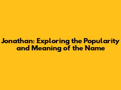 Jonathan: Exploring The Popularity Of The Name