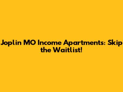 Joplin MO Income Apartments: Skip The Waitlist!