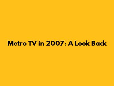 Metro TV In 2007: A Look Back