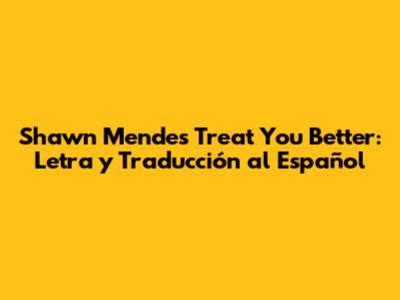 Shawn Mendes Treat You Better: Letra Y Traducción Al Español