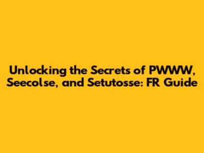 Unlocking The Secrets Of PWWW, Seecolse, And Setutosse: FR Guide